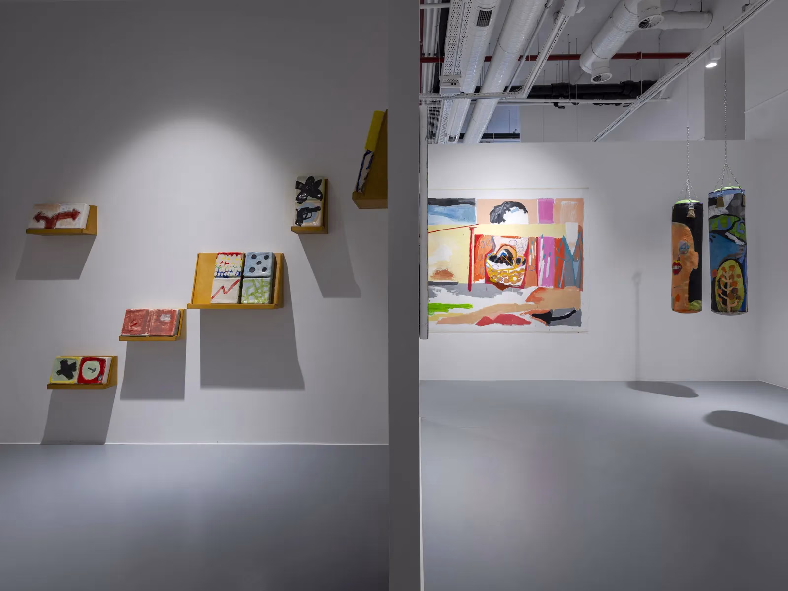 • Duyusal Resimler: Yağlı boya tabloların yüzeyinden taşan bahçe öğeleri, domino taşları, boks torbaları ve telefon ahizeleri izleyiciyi bir oyunun parçası kılıyor.