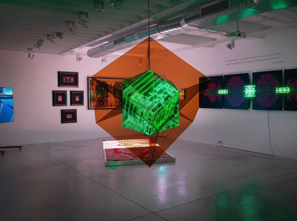 Bulutlar (Anima Serisi): Sanatçı için bulut, sadece meteorolojik bir motif değil, dünyevi ile göksel arasındaki bir eşiktir. Burada, bulutlar paladyum folyo üzerine resmedilmiş ve neon çalışmalarla birleştirilmiş; bu hem eterik hem de toksik olan bulut, çevresel felaket tehdidiyle birlikte gökyüzünün yüce güzelliğini simgeliyor.