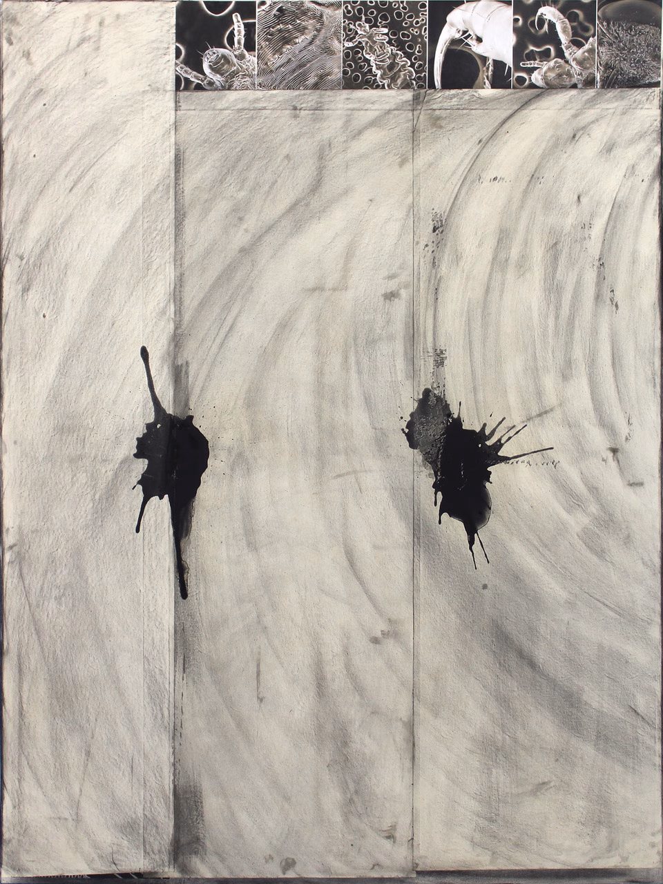 Regnery’nin hazır duvar kağıdı katmanlarına verdiği jestüel yanıtlar; yara fragmanlarını, el çizgilerini veya deri üzerindeki kabarcıkları andırıyor. Bu viskoz ve kesinlikten uzak formlar, isimsiz bir tehdide işaret ediyor. Kömürün kağıtla girdiği o sert ve doğrudan ilişki, endüstriyel olanın soğukluğuna karşı insanın kırılganlığını ve öznelliğini savunuyor. Sanatçının fırçası ve kalemi, baskı altındaki bir ruhun duvardaki son çığlığı gibi yüzeye çıkıyor.