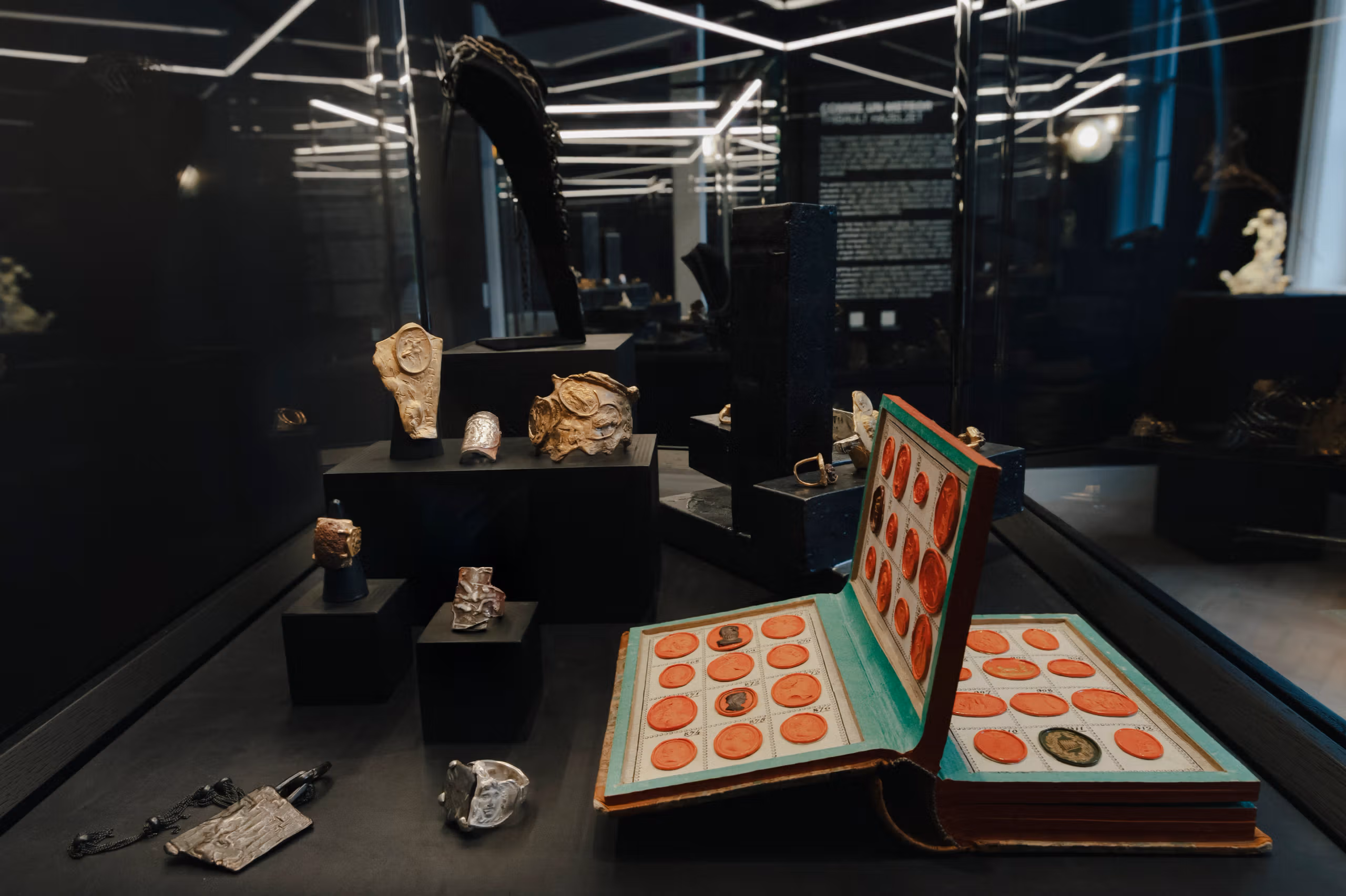 Serginin kalbinde, Hazelzet’in çocukluğunda ailesine ait bir kitapta gördüğü 19. yüzyıl balmumu mühürlerinden (cameos) ilham alan mücevherler yatıyor. Sanat tarihi ve klasik mitolojiden figürleri, meteoritler ve pırlantalarla birleştiren bu parçalar, sanki binlerce yıl öncesinden bugüne fırlatılmış antik kalıntılar gibi görünüyor. Ancak bu tasarımlar sadece estetik birer obje değil; sanatçının deyimiyle “yaşanmışlığı olan maddelere duyulan bir saygı duruşu.”